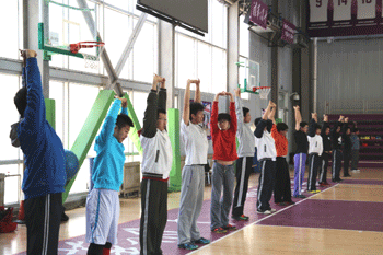 篮球社团同学在做准备活动 篮球社团同学在做准备活动