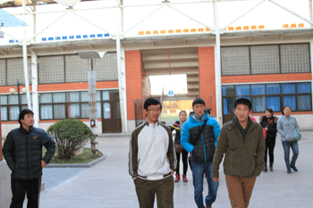 游学团师生在附中学生带领下参观校园 游学团师生参观学校