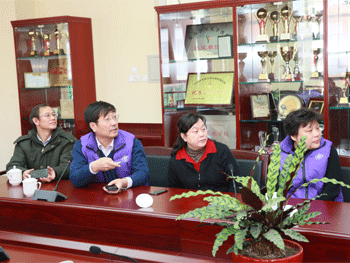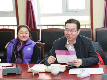 永丰学校执行校长孟卫东(左2)做工作汇报 澳门博彩在线领导(右侧)听取分校工作汇报