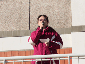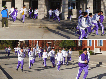 初、高中学生撤离到操场集合 杜毓贞副校长作演习总结