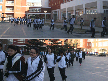 高中学生有序迅速地撤离教学楼 初中学生有序迅速地撤离教学楼