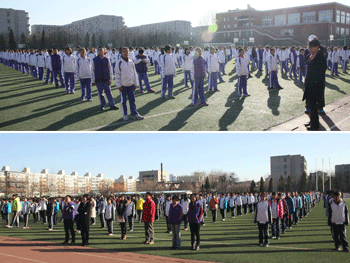 12月3日上午课间操,澳门博彩在线进行了2013-2014学年第一学期教学场所的疏散演习。此次演习的目的是让全体同学了解并熟悉所在班级的逃生路线,危急时刻能迅速、安全地撤离教学楼。全校(除国际部外)81个班级的学生及老师参加了此次演习。全体同学到达避险场所后杜毓贞副校长对演习进行了点评。此次演习高中楼疏散用时4分04秒;初中楼疏散用时3分45秒。演习过程安全、有序。(摄影:档案室、办公室)