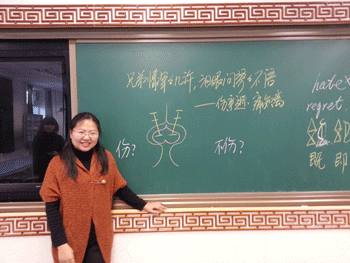 邱晓云老师对本课的设计是她近来所全力探索的专题教学之下的又一次尝试。首先,她通过带领学生们反复诵读课文、古今联系、查询工具书等方法,顺利地走进文本、体会情感。邱老师还通过大量文段扩展激发学生学习兴趣,渗透文言文学法。整节课层次分明,由浅入深,张弛有度,气氛活跃。学生发言十分积极。课后,听课的教研专家李镗老师做出了精彩的点评。