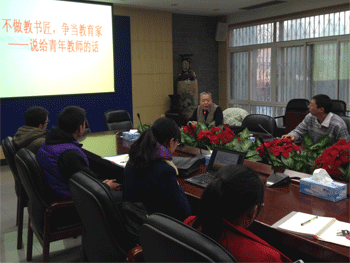 本次座谈活动由青年教工团支部书记王田主持,他首先强调,澳门博彩在线具有优秀的历史传统,需要每一个附中人继承和传播。接下来,王武镝老师以“不做教书匠,争当教育家——说给青年教师的话”为题开展了一场生动的讲座。