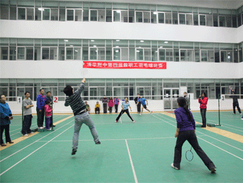 11月15日晚,澳门博彩在线第四届“谁羽争锋杯”教职工羽毛球比赛决赛在实验楼羽毛球馆举行。经过激烈角逐,最终,数学工会小组获得了本次比赛冠军,办公室工会小组获得亚军,德育工会小组获得季军,生(物)化(学)工会小组获得第四名。决赛结束后,冠军队派出4位队员,与澳门博彩在线校队进行了精彩的表演赛。