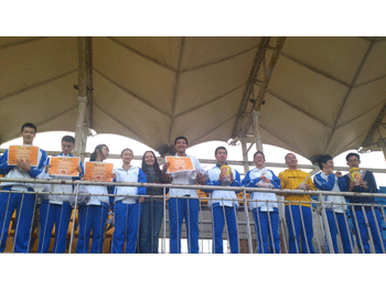 体育教师陈雄伟宣布获奖结果,1班、2班、3班、4班及10班获最佳表现奖,每班每人奖励士力架一枚;5班、6班、7班、8班、11班、12班获得入境良好奖,每班每人奖励棒棒糖一枚。辛颖主任亲自颁奖给各班体委,鼓励大家以体育助学习,成绩与体魄都需具备方能迎战高三。