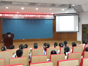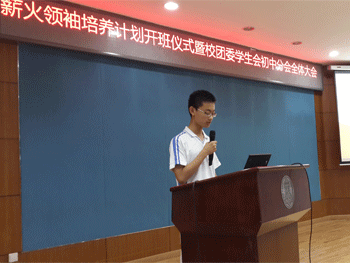 随后,学生会指导老师刘露宣布了新一届初中分会主要学生干部名单,并对薪火领袖培养计划进行了详细的介绍和说明。
