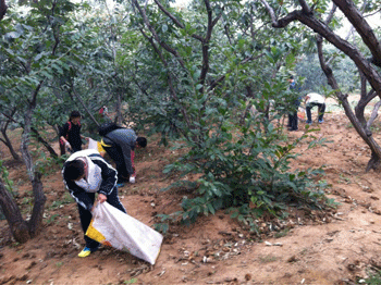 9月30日,澳门博彩在线高13级22名同学来到西山脚下凤凰岭公园龙泉寺担任义工,为龙泉寺大地心农场捡拾栗子。本次活动是高13级家校合作组织的又一次实践活动。
