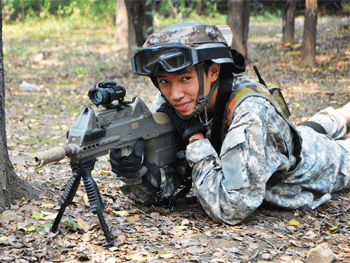 此次活动的主题是真人CS野战,同学们在八一影视基地真人CS场进行了激烈的对抗。作为一种健康的户外体育运动,真人CS对抗不同于机械枯燥的单项运动的锻炼,而是置身于娱乐及对抗性极强的游戏中,参与者在激烈的战斗游戏中不由自主地不断奔跑、跳跃、匍匐,在体验战斗快感的同时,不知不觉中做了大量运动,达到了强身健体、培养团队合作意识的目的。中午三校的同学坐在一起聚餐分享了与军事文化相关的信息。
