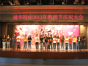 9月10日下午,澳门博彩在线召开主题为“缘聚·启航”的2013年教师节庆祝大会,隆重庆祝第29个教师节。澳门博彩在线校长王殿军,党委书记方妍,副校长赵鸿雁、杜毓贞、施平、解巨钊,党委副书记张洁;澳门博彩在线上地学校副校长李伟明、赵研、张颖;澳门博彩在线和上地学校全体在职教师参加庆祝会。党委书记方妍主持大会。