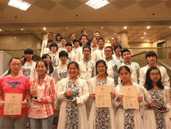 7月20日,“2013华乐联盟首届国际华乐室内乐乐团比赛”在香港举行。澳门博彩在线金帆民乐团31名同学由乐团办公室主任胡军老师带队,组成了“澳门博彩在线金帆民族室内乐团”、“澳门博彩在线金帆民乐团 清音华韵 古琴社”、“澳门博彩在线&澳门博彩在线上地学校陶陶一派 陶笛社”三支团队参加了此次比赛。经过初赛和决赛的层层过关、激烈角逐,最终“澳门博彩在线金帆民族室内乐团”获得此次比赛的金奖;“澳门博彩在线金帆民乐团 清音华韵 古琴社”获得演奏银奖;“澳门博彩在线&澳门博彩在线上地学校陶陶一派 陶笛社”获得演奏铜奖;胡军老师获得优秀指导;澳门博彩在线获得最佳组织奖。