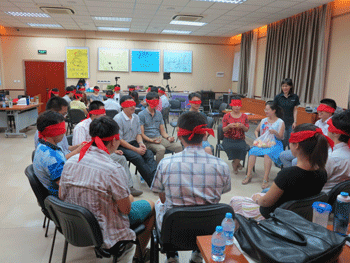 在随后两天的专业技能培训活动中,新教师们分组演示了微格教学和说课,并对教学技能展开积极的讨论,得到了指导教师的悉心指导。陈红老师对各位新教师的成果展示作了精彩的总结。校外拓展活动是本次教职工入职培训的新亮点,全体新教职员工驱车前往怀柔拓展基地,丰富的拓展训练帮助了新教师在互助中培养团队精神和拼搏意识,拉近了心理距离。16日上午,澳门网上博彩心理辅导中心主任陈明秋主持了教育技能培训活动。