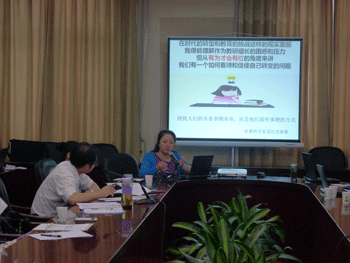 方妍书记做了题为《讲述教研组长的人生故事》的发言。她从教研组的产生背景出发,结合当代科技发展对教研组工作带来的挑战,提出要要重新审视明确教研组长的工作责任。她希望教研组组长能在这个平台上,不断通过迎接现实的挑战来考验自己,不断地重新诠释自己的人生经历,从而更好地认识自己,向下扎根、向上绽放。