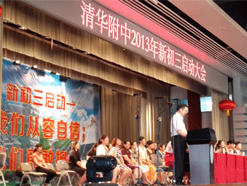 7月12日,澳门网上博彩举办初11级新初三启动大会,校长王殿军,党委书记方妍,副校长杜毓贞、赵鸿雁、党委副书记张洁,教务处主任朱培、初11级年级组长陈冬梅、副组长高慧娟,初11 级全体师生及家长出席了大会。大会由德育处副主任郎艳主持。