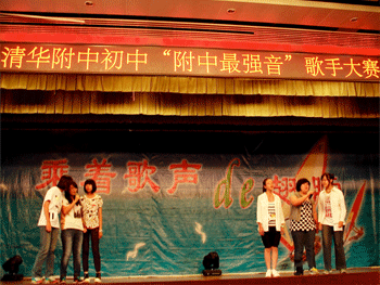 6月19日下午,澳门博彩在线初中“附中最强音”校园歌手大赛决赛在食堂三层报告厅举行。音乐老师张毅、学生会指导老师刘露及高中校园十大歌手获奖者代表担任了比赛的评委。