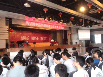 会上,教务处肖娜老师对高考两天的时间安排和注意事项作了详细介绍,之后年级组长白雪峰做了题为《我相信伸手就能碰到天》的动员报告。白老师引导同学们立足高远,以平常心面对高考,语言轻松幽默,既缓解了同学们紧张的情绪,又鼓舞同学们以最饱满的精神状态迎接挑战。最后,白老师要求同学们每人给20年后的自己写一封信,毕业典礼时交给学校封存,并与同学们相约2033年6月9日上午9:30高10级校友集会时启封。会场上,同学们表现得情绪饱满,斗志昂扬。