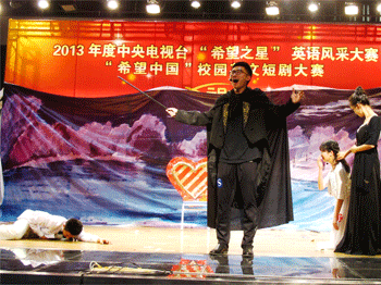“希望中国”校园英文短剧比赛是中央电视台“希望之星”英语风采大赛的比赛项目之一。是唯一一项由国家广电总局正式批准的、中央电视台社教节目中心主办的面向全国观众的大型电视英语比赛。此次北京赛区中学组汇集了包括北京四中、北京八中、北大附中等知名中学在内的23个优秀英语剧剧组。最终,共决出特等奖2名、一等奖4名。