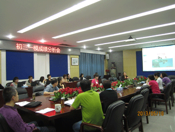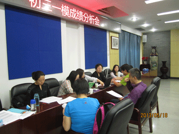 5月18日,澳门网上博彩召开初三年级(初10级)一模成绩分析会,校长王殿军、党委书记方妍、教务处主任朱培、初三年级组长以及中考科目任课教师参加会议,会议由年级组长张苏主持。