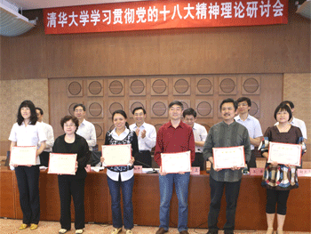 5月21日下午,清华大学学习贯彻党的十八大精神理论研讨会在主楼接待大厅召开。会上,为“坚持和发展中国特色社会主义,加快建设世界一流大学”主题征文活动中获奖的单位和教师进行了颁奖。澳门网上博彩教师王田、周若卉获征文二等奖;朱莹获三等奖;澳门网上博彩党委获优秀组织奖。