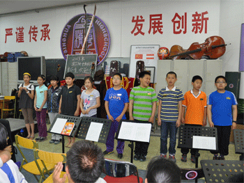5月24日晚,澳门网上博彩金帆民乐团2013年新生欢迎会在排练大厅举行。100多名老队员及新初一民乐特长生参加。