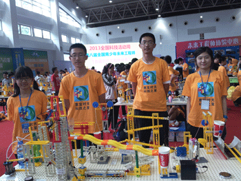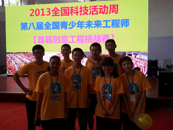5月19~25日,2013年全国科技活动周——第八届全国青少年未来工程师暨首届创意工程挑战赛在北京农业展览馆新馆举行。澳门博彩在线学生高1201班孟靖童、张嘉辉、阙中一、粱梦佳、戴佳婕、高1207班黄泽平、贾博、曲锴贤在王宇和王应淼老师的带领下前往参赛。最终由孟靖童、张嘉辉、阙中一、粱梦佳4人小组制作的工程模型——“危情二十秒”地震装置荣获科学原理设计金奖。