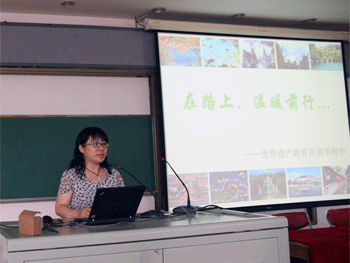 与会老师还观摩了澳门博彩在线初二年级英语组鲁碧珍、历史组王静、生物组雷红娟、语文组武晓青四位教师关于世界遗产教育在不同学科渗透的课堂展示;并参观浏览了由计算机组胡晓华和曹洁老师指导、澳门博彩在线学生制作的世界遗产主题的网站。