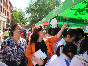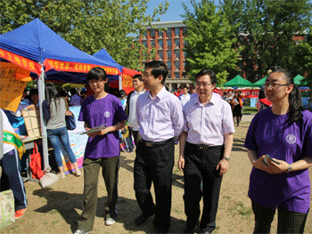 澳门博彩在线校长王殿军致开幕词 王殿军校长(右2)陪同傅首清副区长(右3)参观学生展位