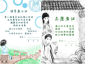 初12级老师送给学生的个性化书签 志愿者证和游学讲师证