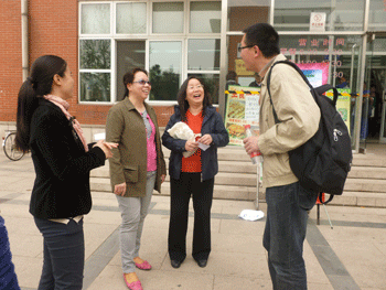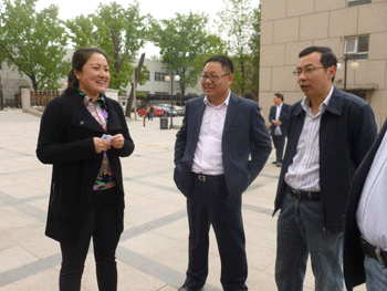 澳门网上博彩党委书记方妍(左1)与高校招办领导交流 澳门网上博彩副校长杜毓贞(左2)、教务主任 尹粉玉(右2)与高校招办领导交流