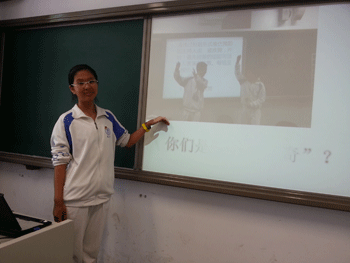 初1203班班长向家长介绍班级活动 初1208班孙清妍同学给家长们播放班级 短片