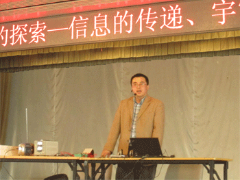 讲座内容既是初三物理课堂教学的延伸,也丰富了课堂的教学形式。讲座分为两部分:第一部分是信息的传递,重点介绍电磁波的产生、传播及其应用;第二部分是宇宙的奥秘,重点介绍宏观与微观的统一。张林老师从物理学史的角度展开,通过丰富的图片和现场演示实验,带领同学们翱翔在信息和宇宙中。尤其是在介绍电磁波的应用时,从美国的GPS定位系统到我国的北斗卫星导航系统,从首位上天的前苏联航天员加加林到我国的神州系列飞船的发射,激发了同学们的爱国热情和为学校、为国家、为科学贡献力量的激情。