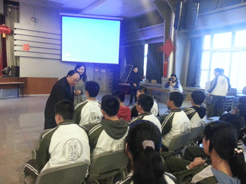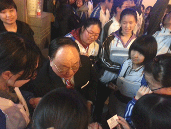 黄天中教授走到同学们中间演讲 黄天中教授和高中生交流