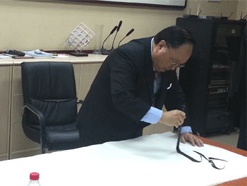 黄天中教授和高中生交流 黄天中教授为澳门博彩在线留下墨宝