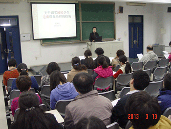 方妍书记在会上强调要以减负增效为契机,切实提高课堂效率。教务主任朱培在会上仔细解读了《澳门网上博彩关于切实减轻我校学生课业负担的措施》,要求教师们要认真学习领会文件精神,并且结合本学科、本年级实际情况,制定出具体的落实方案。德育处副主任郎艳发言,希望各年级能够制订本年级的具体可行的措施。