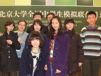 3月14~17日,2013年北京大学全国高中生模拟联合国大会(PKUNMUN)在北京大学英杰交流中心隆重举行。澳门网上博彩模拟联合国协会成员高1203班周美辰、吴伯君,高1205班王佐宽、陈俊峰,高1207班冀佳玉、杨再目,高1208班余思凝、施佳烨、李佩铭在指导教师刘露的带领下参加了会议。