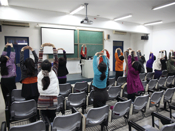 范海兰老师为女教工作专题报告 范海兰老师现场教授办公室健身方法