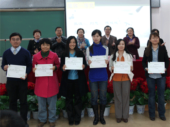 首先由校长助理兼德育处主任辛颖介绍本届班主任基本功大赛筹备、布置、组织比赛的全过程以及比赛中的精彩瞬间。随后,杜毓贞副校长宣布第三届班主任基本功大赛获奖名单,校领导为获奖者颁奖。本届比赛共有61名教师分获个人一、二、三等奖,占参赛人数的50%;共有17个小组分获小组一、二、三等奖,占参赛小组数的46%。