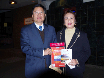 乐团演奏《东海鱼歌之1 钓鱼岛的土是我祖宗的土》 施平副校长(左)向美国清华校友会代表赠送钓鱼岛地图及乐团演出视频光盘
