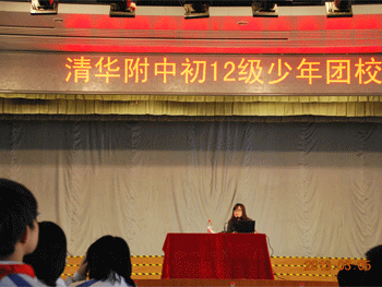 在庄严的中国共产主义青年团团歌声中,开学典礼正式开始。首先,初一年级组长邱晓云致辞,借用三句诗词对团校学员们给予了殷切期望并提出三个要求:一是非常乐观地看待这一切,世界上没有过不去的火焰山,要积极乐观地找寻属于自己的芭蕉扇;二是相信自己,在团队中做一个有责任心的人,唯有能够担负起责任,才受人尊敬,才会觉得“我幸福”。三是要有健康的体魄,为祖国健康工作五十年,希望同学们积极锻炼,不要骨脆脆,而是真健康。随后,初1211班侯美琳代表全体同学发言,表达了同学们积极进取的强烈愿望和信心。最后,校团委书记刘贝贝宣布了初12级各中队与高12级各对口支部名单。