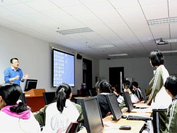 一个多小时的参观后,北大图书馆信息咨询部李晓东老师又给同学们做了一个题为“如何利用电子资源进行小课题研究”的报告。根据同学们的实际情况,李老师向大家介绍了适合大家使用的数据库资源,并结合具体案例向同学们展示小课题研究的科学方法、流程。一个小时的报告让同学们通过数据库资源平台拓展了思路,更加系统地懂得了学术研究及论文写作的规范,对学术研究有了更具体清晰的认识。