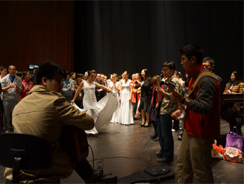 合唱团在2013年西班牙国际青少年艺术节比赛中演唱 艺术交流中电声乐队与弗拉明戈舞团载歌载舞 1