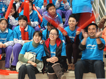 创新实验班师生拉拉队 澳门网上博彩男篮队员与王新龙教练在揭幕战后合影