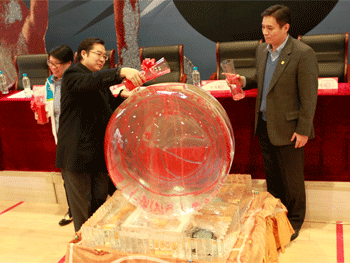 王殿军校长(左)和张燕军嘉宾为联赛新LOGO揭幕 比赛中