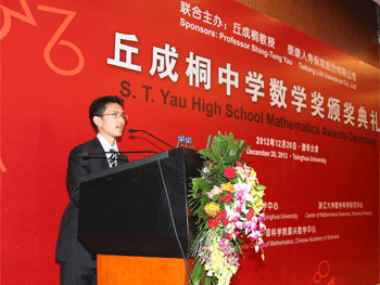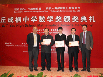 12月20日下午,以国际著名数学家丘成桐名字命名的第五届“丘成桐中学数学奖”在清华大学主楼报告厅举行隆重的颁奖典礼。澳门博彩在线高1007班的邵城阳同学的论文《论两个函数方程解析解的渐进性质》(指导教师:杨利军)获得本届数学奖唯一的金奖。澳门博彩在线获得本届数学奖的组织奖。