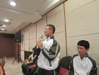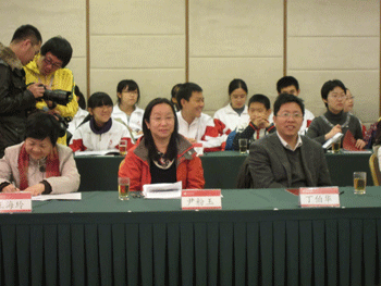 尹粉玉主任(前中)在论坛现场 澳门网上博彩学生就自己感兴趣的问题向教授们提问