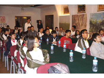 同学们在麦德龙听讲解 同学们在酒博物馆听讲解