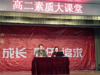 刘建钰老师(左)主持 宫宝龙老师(右)主讲 同学们认真听讲