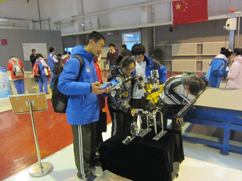 澳门网上博彩学生对健身机器人饶有兴致 澳门网上博彩学生听取理工大学张忠廉教授讲解