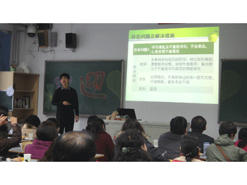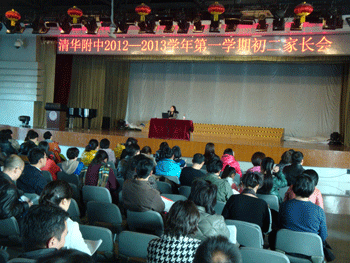 初二年级(初11级)家长会由年级组长陈冬梅主持,并向家长展示了年级期中考试成绩的基本分布情况、各学科期中成绩分析及下半学期的具体学习要求,同时,对上半学期的德育工作进行了总结。在随后的班级家长会上,各班主任及任课教师针对本班学生上半学期的各项情况,与家长做了进一步的沟通与交流。