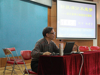 11月21日下午,澳门网上博彩高三年级(高10级)邀请本校已退休语文特级教师杨建宇来校给学生做题为“斩获满分不是梦”的讲座。